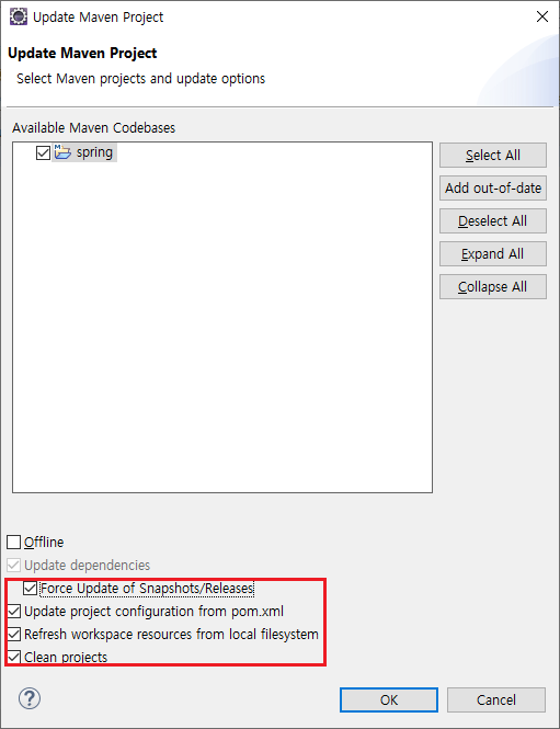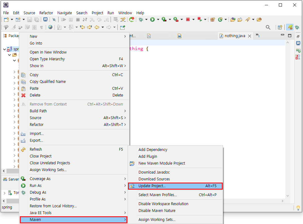 2. 프로젝트에서 우클릭 - Maven - Update Project