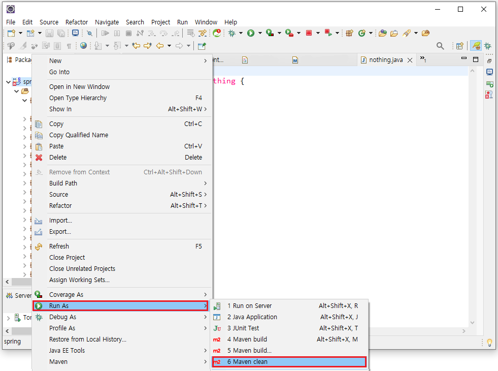 1. 프로젝트 우클릭 - Run As - Maven clean